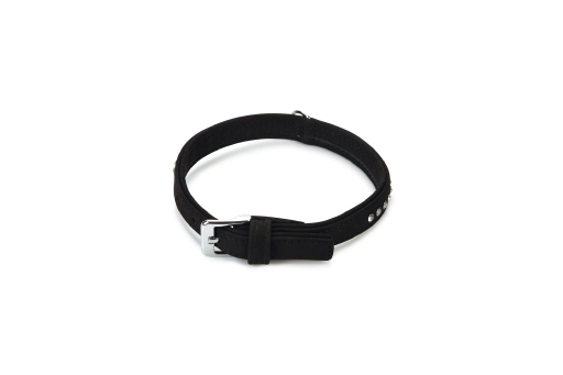 Beeztees leren halsband Buffalo Strass. Zwart. 40 cm x 17 mm.