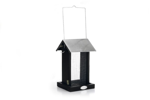 Deze Pindahouder is een straks afgewerkten houten pindahouder, om jouw vogels van lekkere pindas te voorzien. Door de zwarte kleur en het zinken dakje, krijgt deze pindahouder een stoer uiterlijk. Met deze pindahouder help je vogels te voorzien van eten in de winter, wanneer zij moeilijker voedsel kunnen vinden. Deze pindahouder kan zowel worden opgehangen als worden neergezet. Afmeting: 15x15x28,5 cm