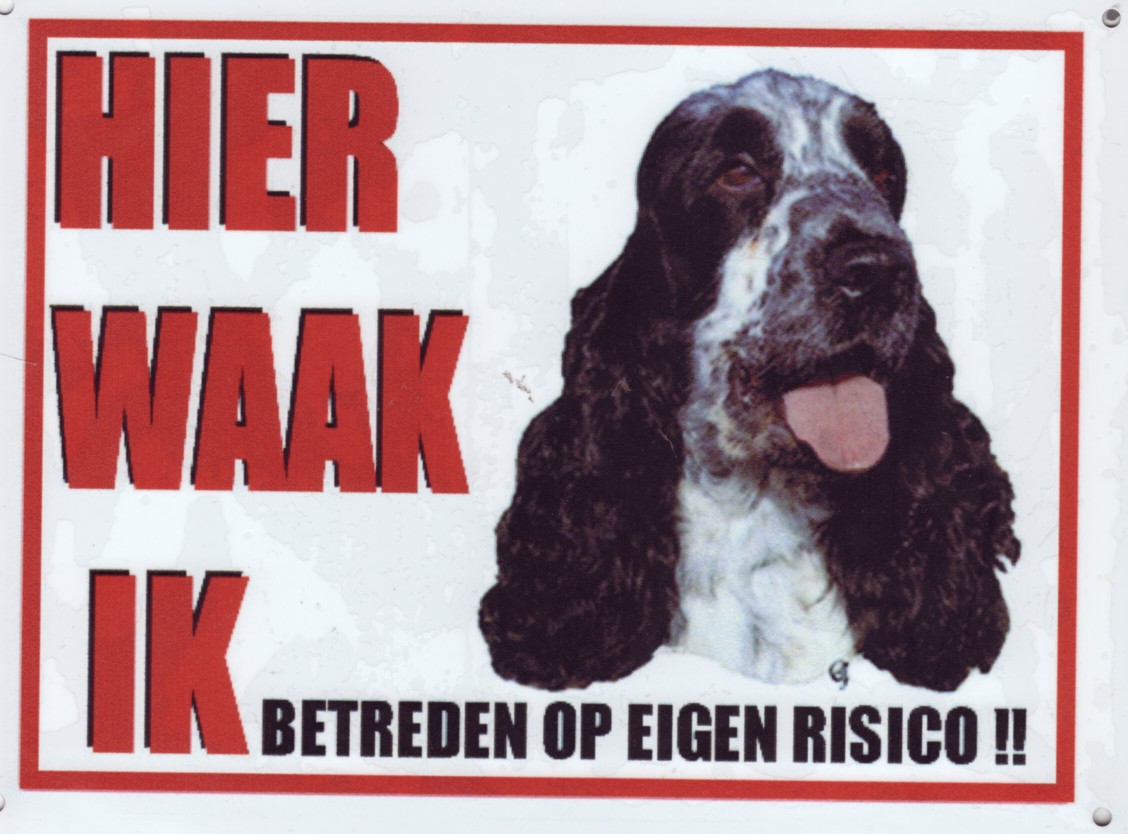 Aluminium, weerbestendig waakbord met een Cocker Spaniel. Dit waakbord heeft montagegaten. Afmetingen: +/- 15,5 x 20,5 cm.